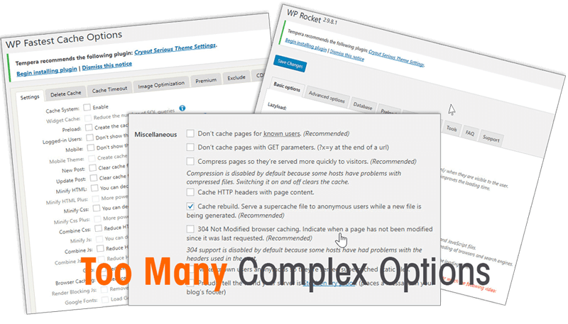 Whilst all our competitors like to confuse users with big words & techno talk to make the product sound good to the experts. Many of their features offer minimal performance increases often at the expense of time or breaking sites.