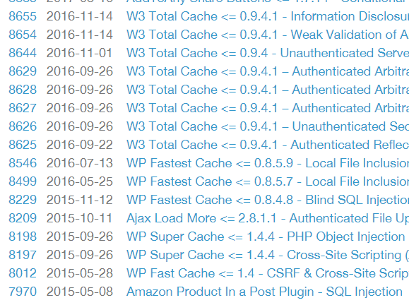What makes matters worse is that just one vulnerability in a cache plugin means 10's of thousands of sites hacked as hackers scan or sites running unsecure plugins